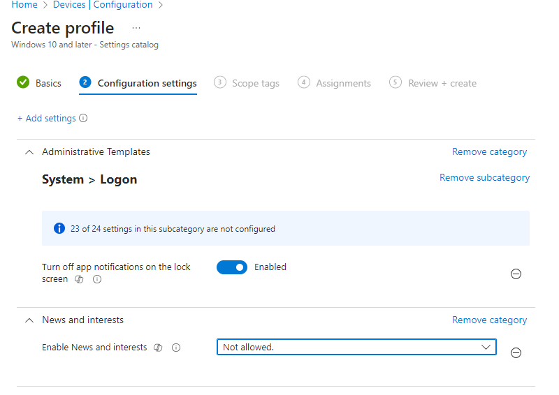 Vous pouvez utiliser le catalogue de paramètres (Settings Catalog) en configurant l’un des deux paramètres suivants :