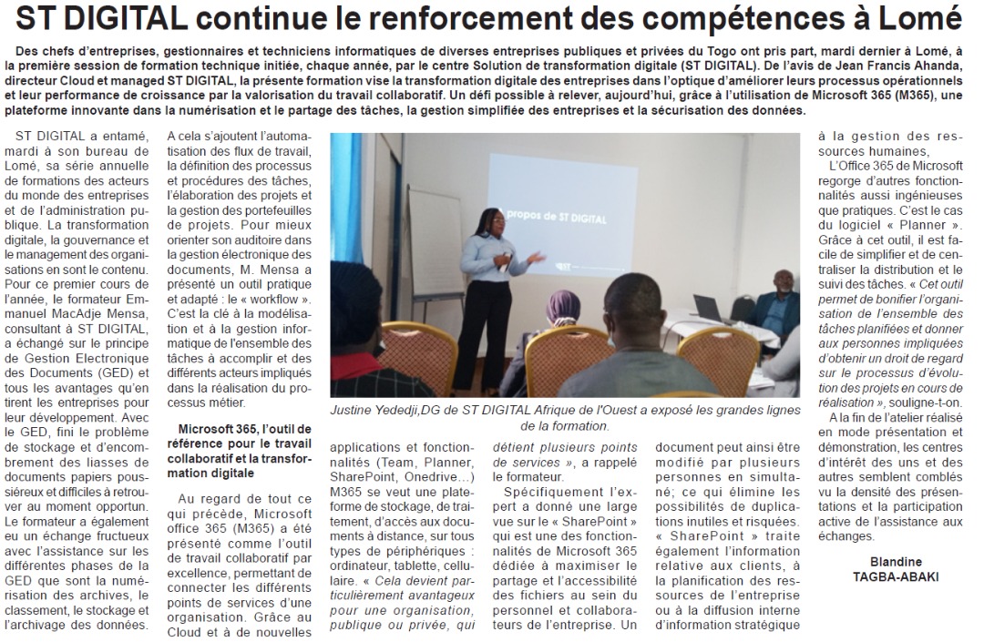 ST DIGITAL continue le renforcement des compétences à Lomé
