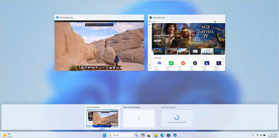• Dans Windows 365 Switch, vous pouvez désormais vous déconnecter du Cloud PC directement à partir de votre PC local. Pour ce faire, il suffit d'aller dans Local PC > Task view, de cliquer avec le bouton droit sur le Cloud PC et de sélectionner Disconnect. Microsoft a également ajouté des info-bulles qui affichent les options de déconnexion réseau et de déconnexion utilisateur dans le menu de démarrage du Cloud PC afin que vous puissiez faire la différence entre ces fonctionnalités.